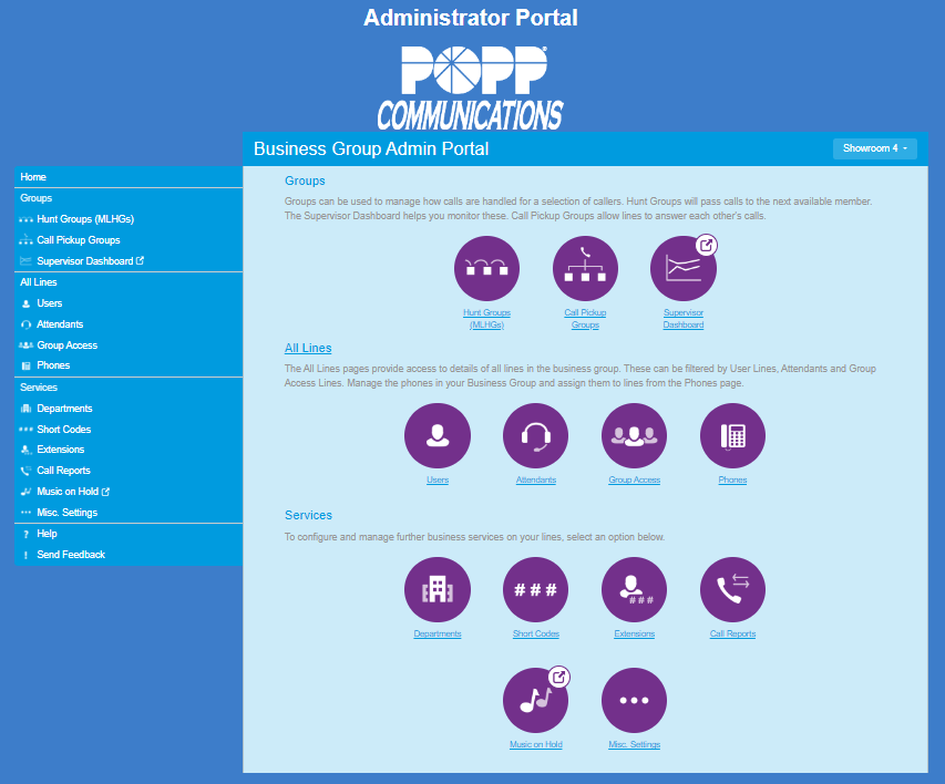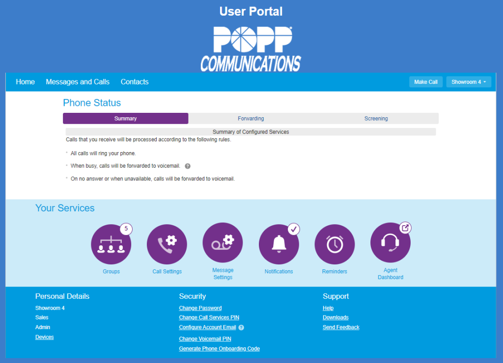 Unified Phone System administrators can login at portal.popp.com/bg (email or telephone number and password required)