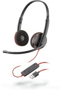 - Wired, over-the-head (both ears) headset with noise-canceling microphone