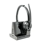 - Wireless, over-the-head (both ears) headset with noise-canceling microphone